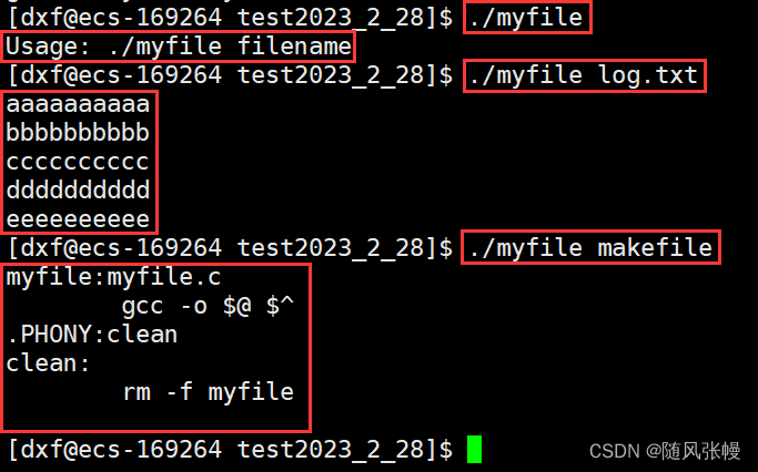 创建一个myfile.c文件写入下图一所示的代码,创建一个makefile文件写入下图二所示的代码。使用make命令生成可执行程序,使用./myfile+文件名即可打印对应文件的内容,如下图三所示。