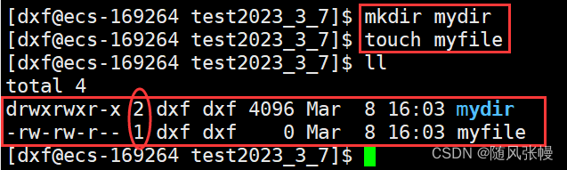 问题2:如下图所示,为什么创建普通文件硬链接数是1,为什么创建目录硬链接数是2?