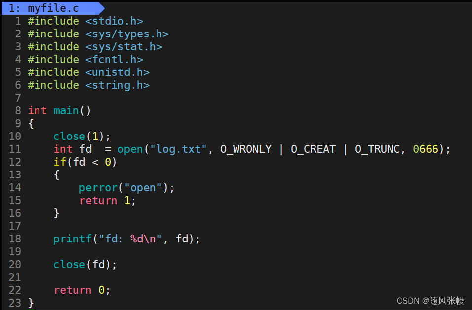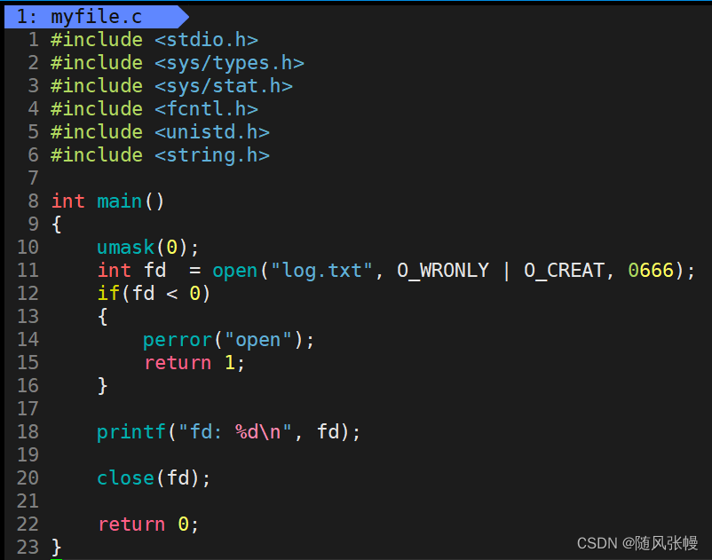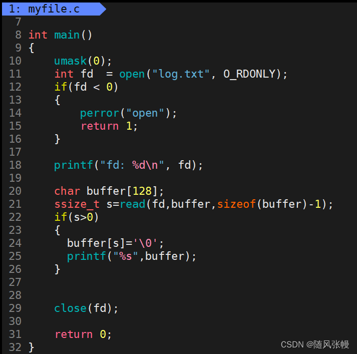 返回值int是文件描述符,文件描述符我们第三节详细讲解,如果返回-1代表文件打开错误。