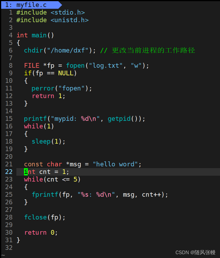 fopen("log.txt", "w")打开文件没有带路径,那么文件默认会在当前路径形成。如上图三所示的cwd的内容就是当前进程所处的工作路径,即当前路径。