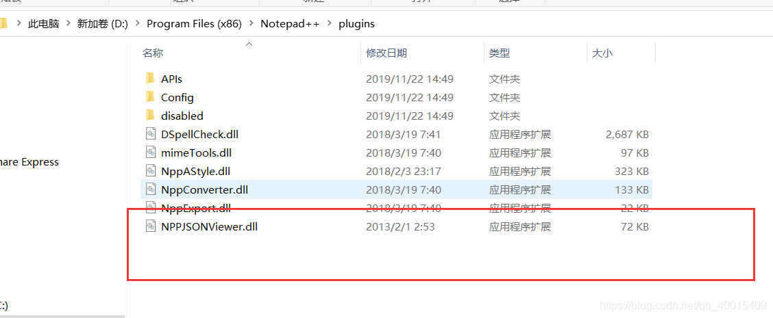 2、把插件放入到notepad++的安装目录下的plugin下,如图: