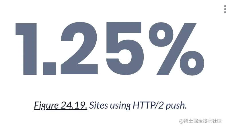 HTTP/2让网站能提前发送页面资源,而不再需要等到需要时再发送。但是正如Jake Archibald 之前文章写到的,这个特性有很多问题,而且很难达到收益。目前看只有1.25%的使用率。