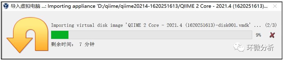 基于虚拟机安装QIIME2——解压下载的QIIME2软件压缩包。双击其中的镜像文件QIIME 2 Core - 2021.4 (1620251613).ovf,弹出导入窗口。