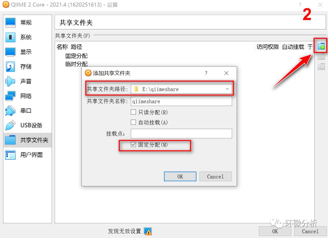 设置共享文件夹,用于存取文件。先在自己电脑的Windows系统里创建共享文件夹qiimeshare,本教程使用已经创建的E:\qiimeshare作为共享文件夹。