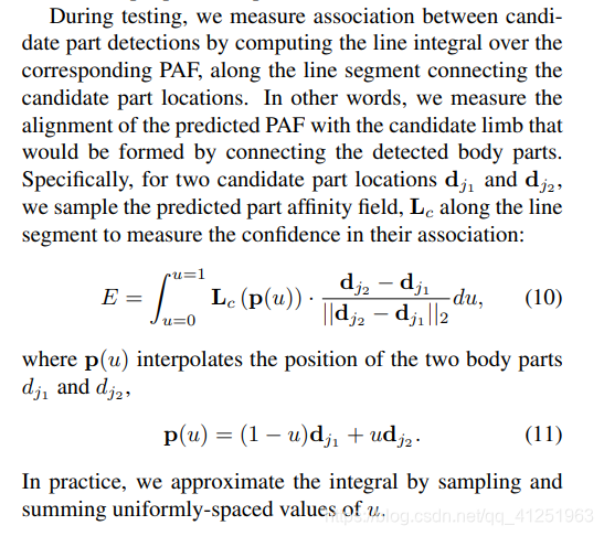,D_J = { d_j^m : for j in {1...J},m in {1...N_j}}$N_j代表身体部位j的候选个数,d_j^m in R^2 为身体部位j的第m个候选检测。这些检测的候选部位需要与同一个人的其他候选部位连接,换句话说,我们需要找到成对的身体检测,保证它们实际上是连接着的肢体。我们定义了一个变量