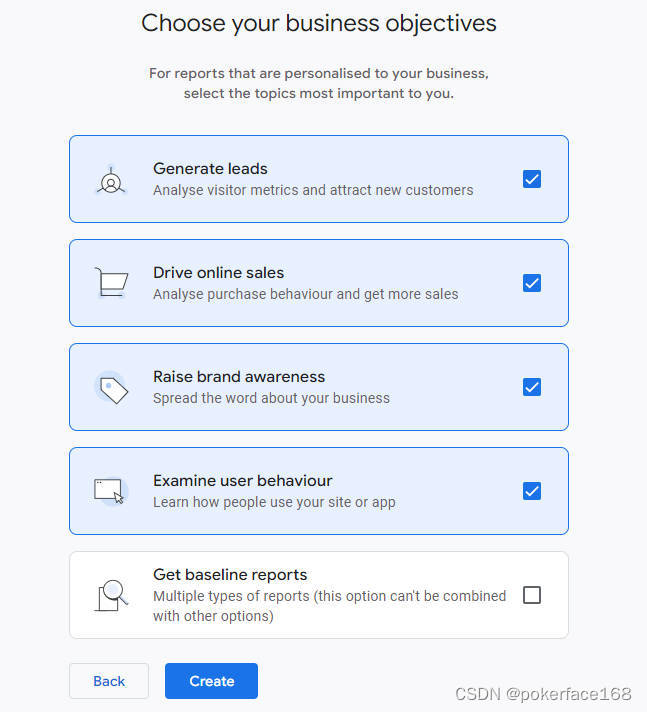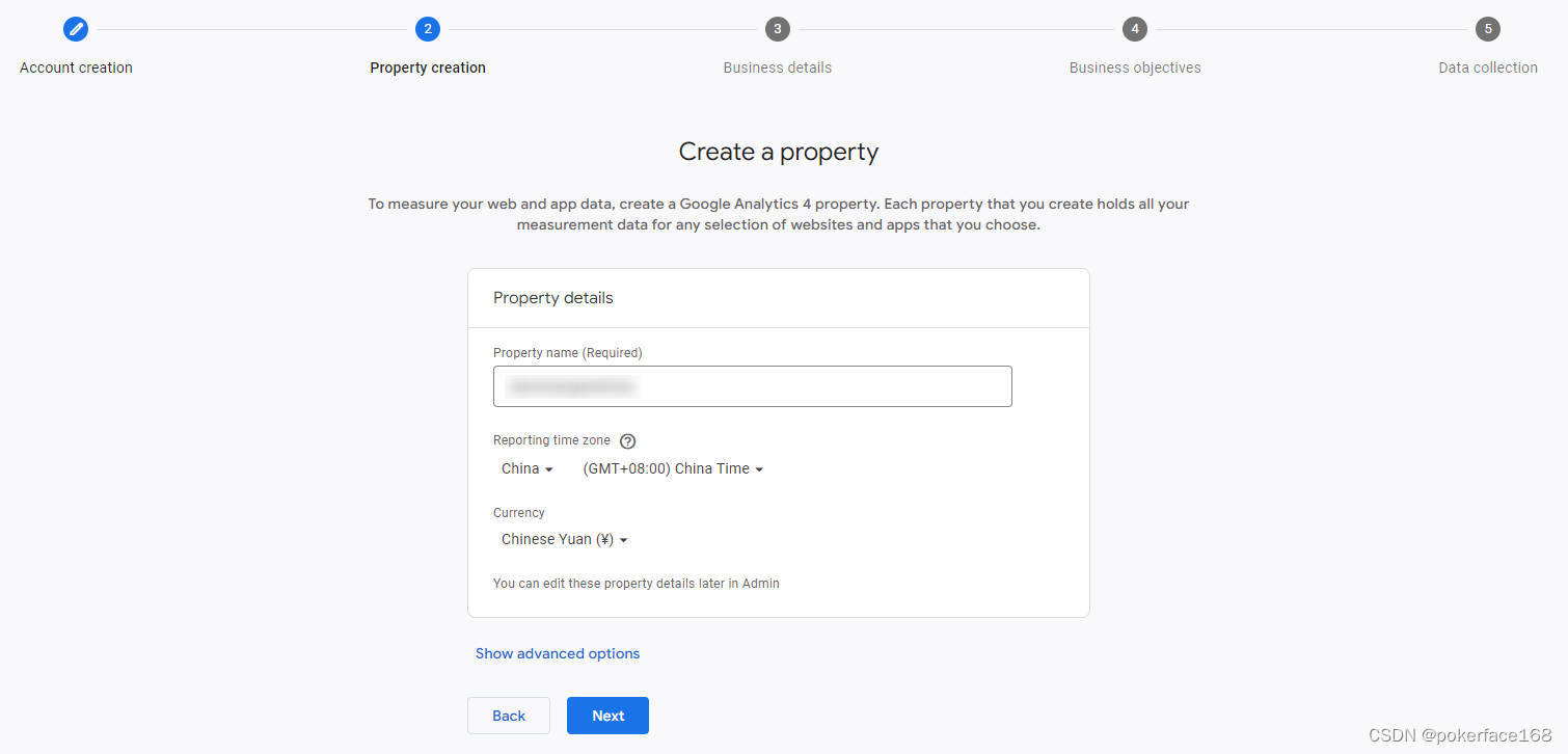 在Google Analytics中,属性表示你要跟踪分析的网站。在Google Analytics主页,单击“创建属性”按钮,然后按照提示输入一个绑定属性名称。