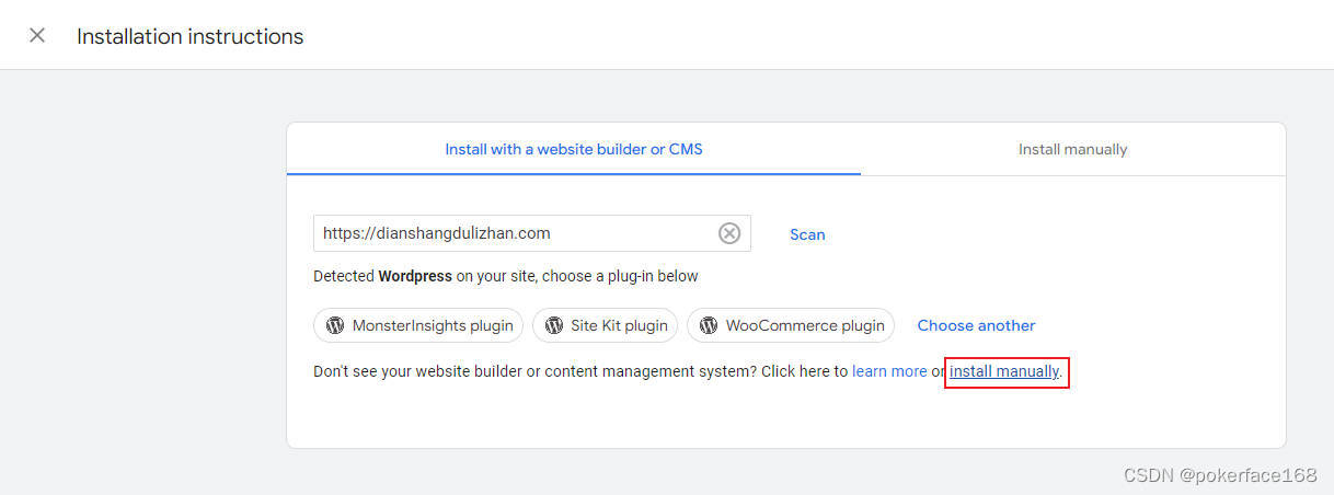 输入你的网站URL:在弹出的窗口中,输入你的网站的URL(例如:https://dianshangdulizhan.com/)。