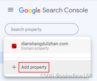 在Google Search Console主页,点击右上角的“添加属性”按钮。