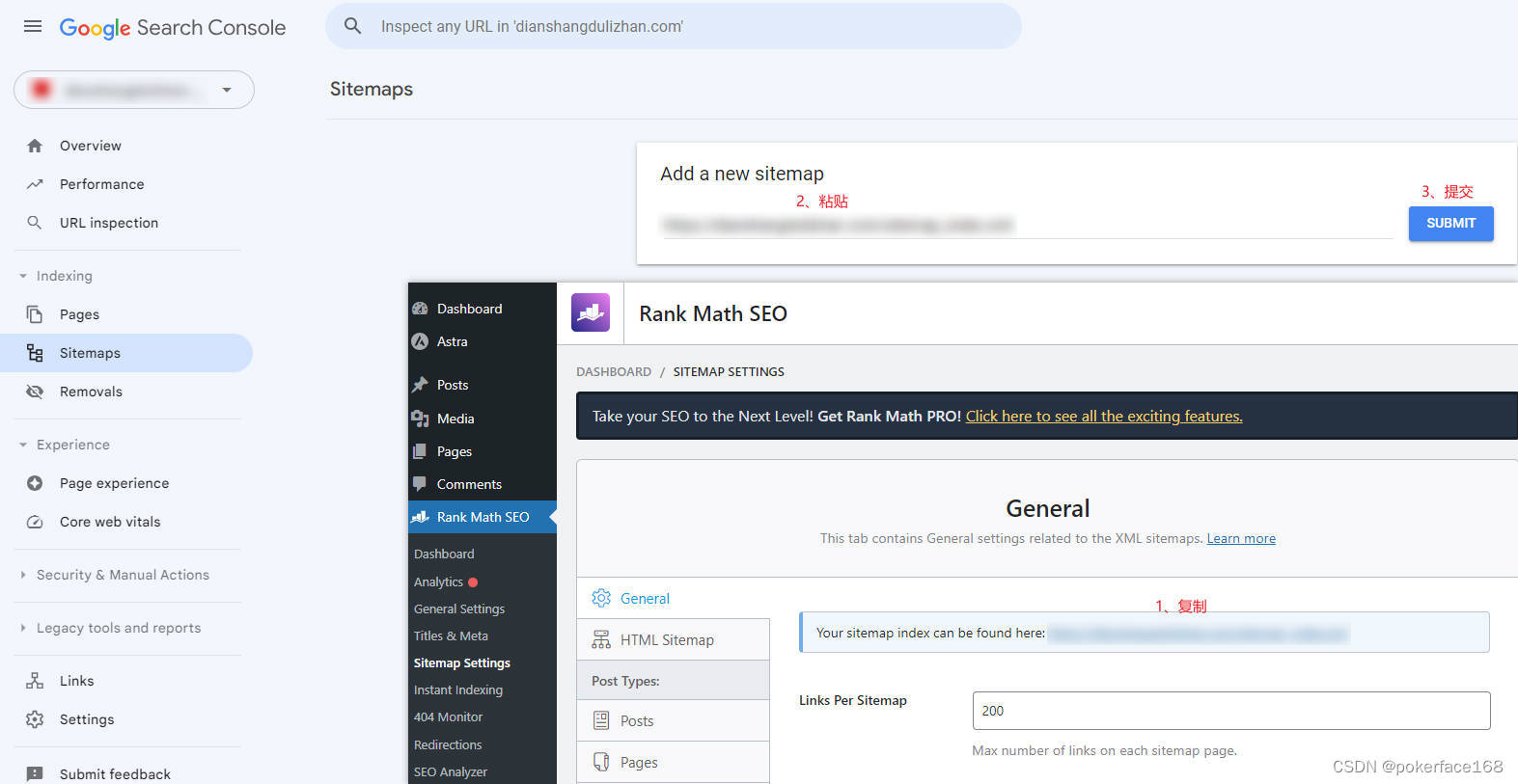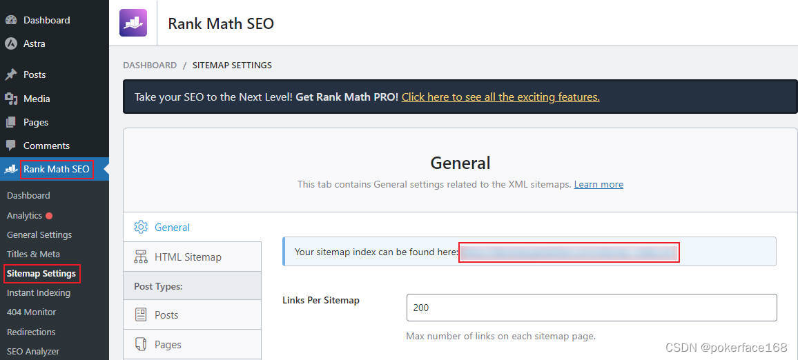 首先获取到你的网站地图,我这里使用的是Rank Math,这里插件的安装在我的另外一篇博文WordPress搭建个人博客中有讲到。在Rank Math–Sitemap Settings–General下能找到你的sitemap。