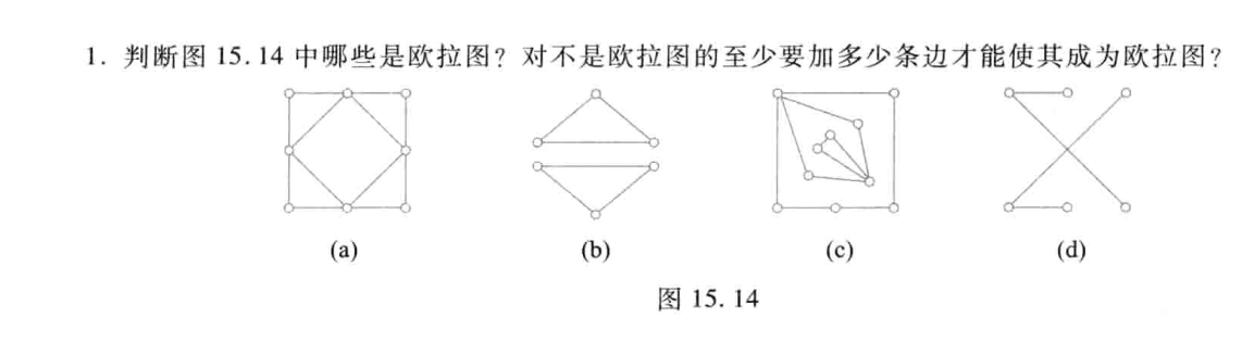 有上述定理可知:a中结点度数均为偶数故为欧拉图,b不连图不是,c是,d存在奇数度数