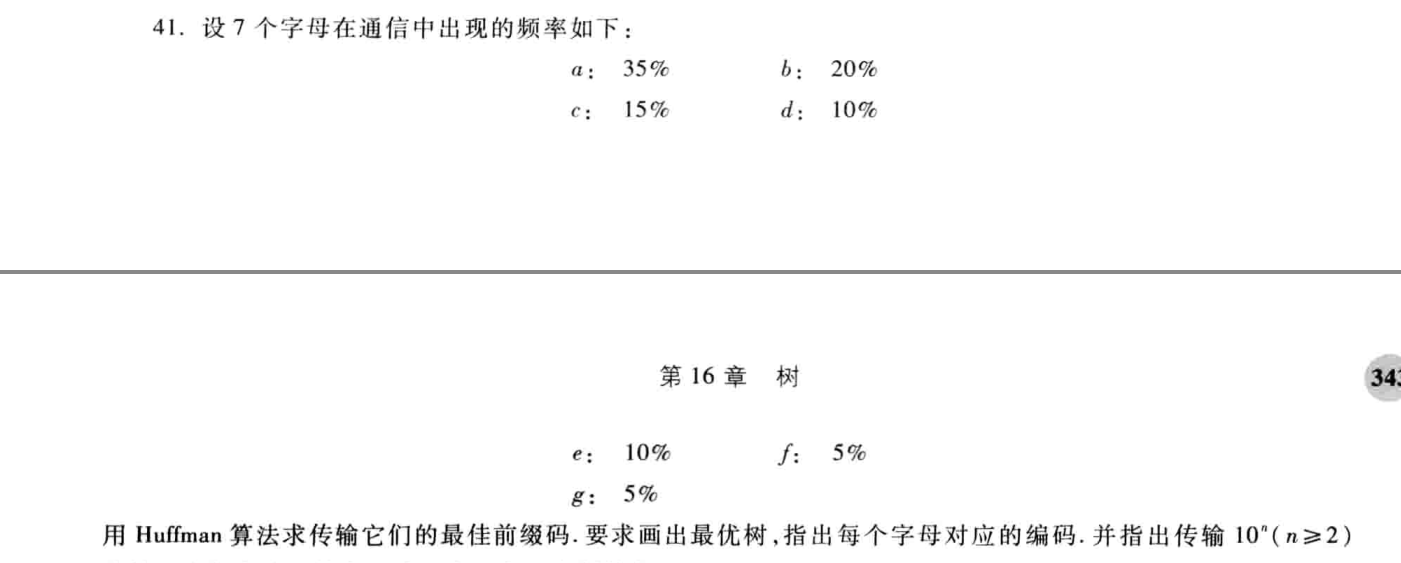 左边的边为0 , 右边的边为1,从头写到叶节点即为最佳前缀编码