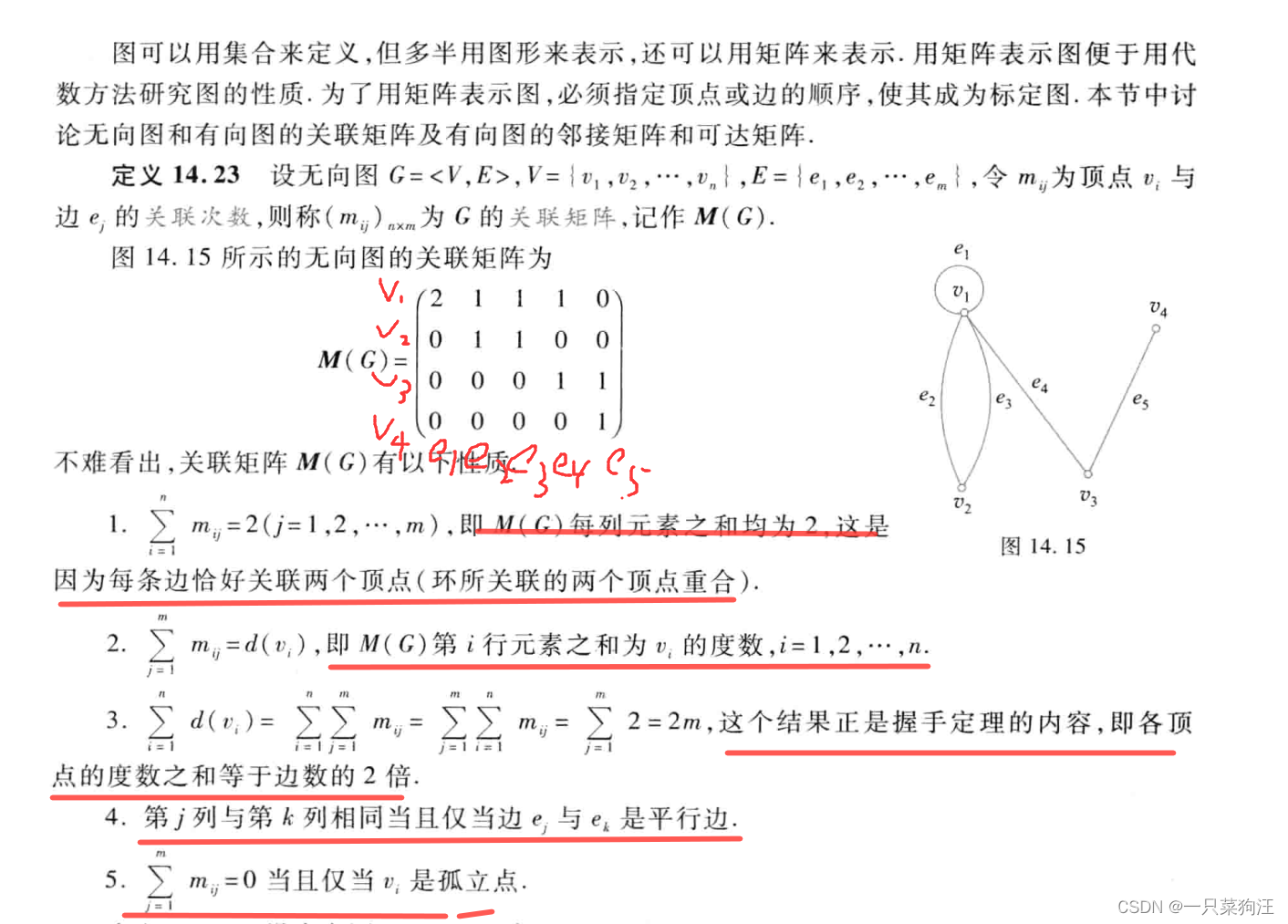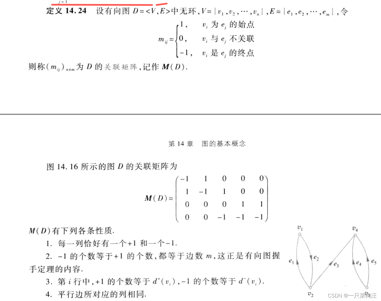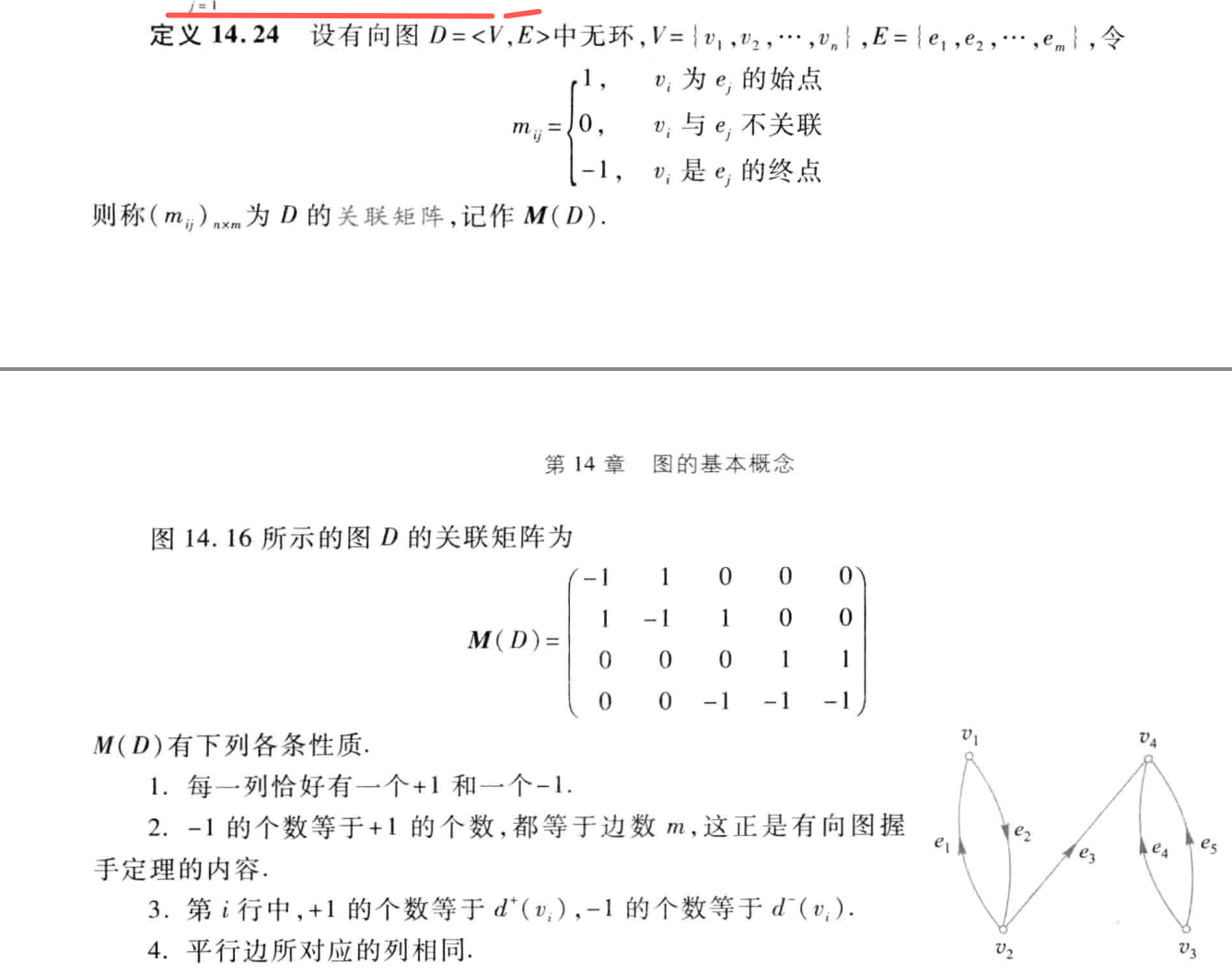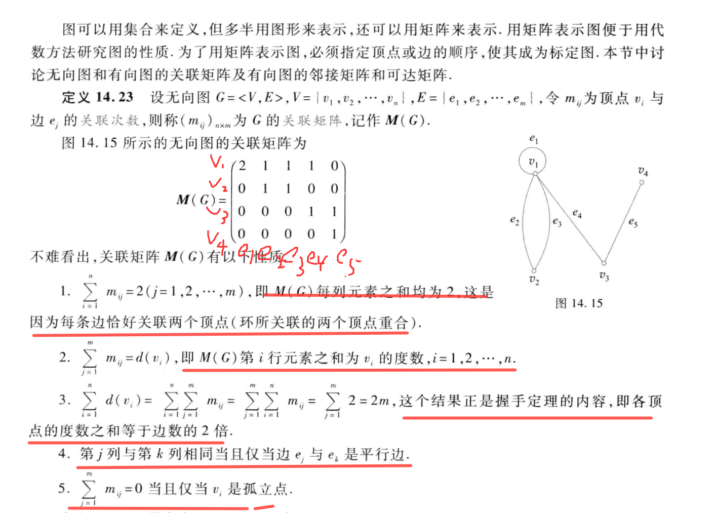 行表示边,列表示点,用关联矩阵画图时可根据列中有1的相连,例:e2时 v1和v2相连,若为2,则说明为环