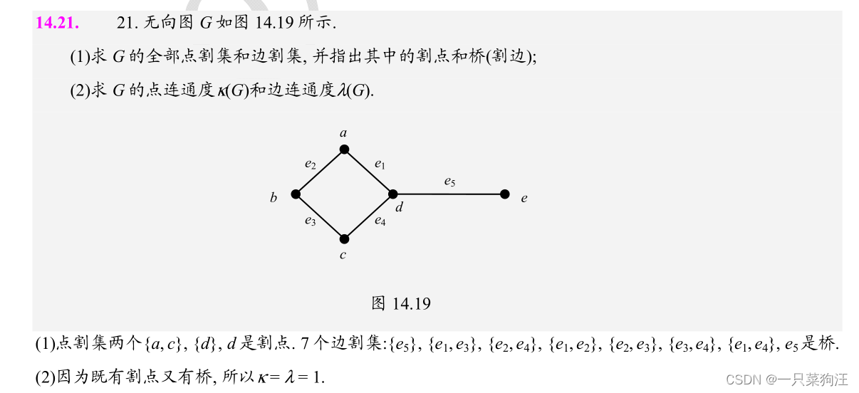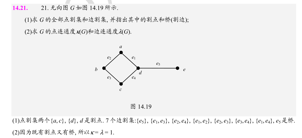 点连通度k(G) = 使连通图G成为一个不连通图需要删除的点的最小数目,记为K,则图也可称作K-连通图