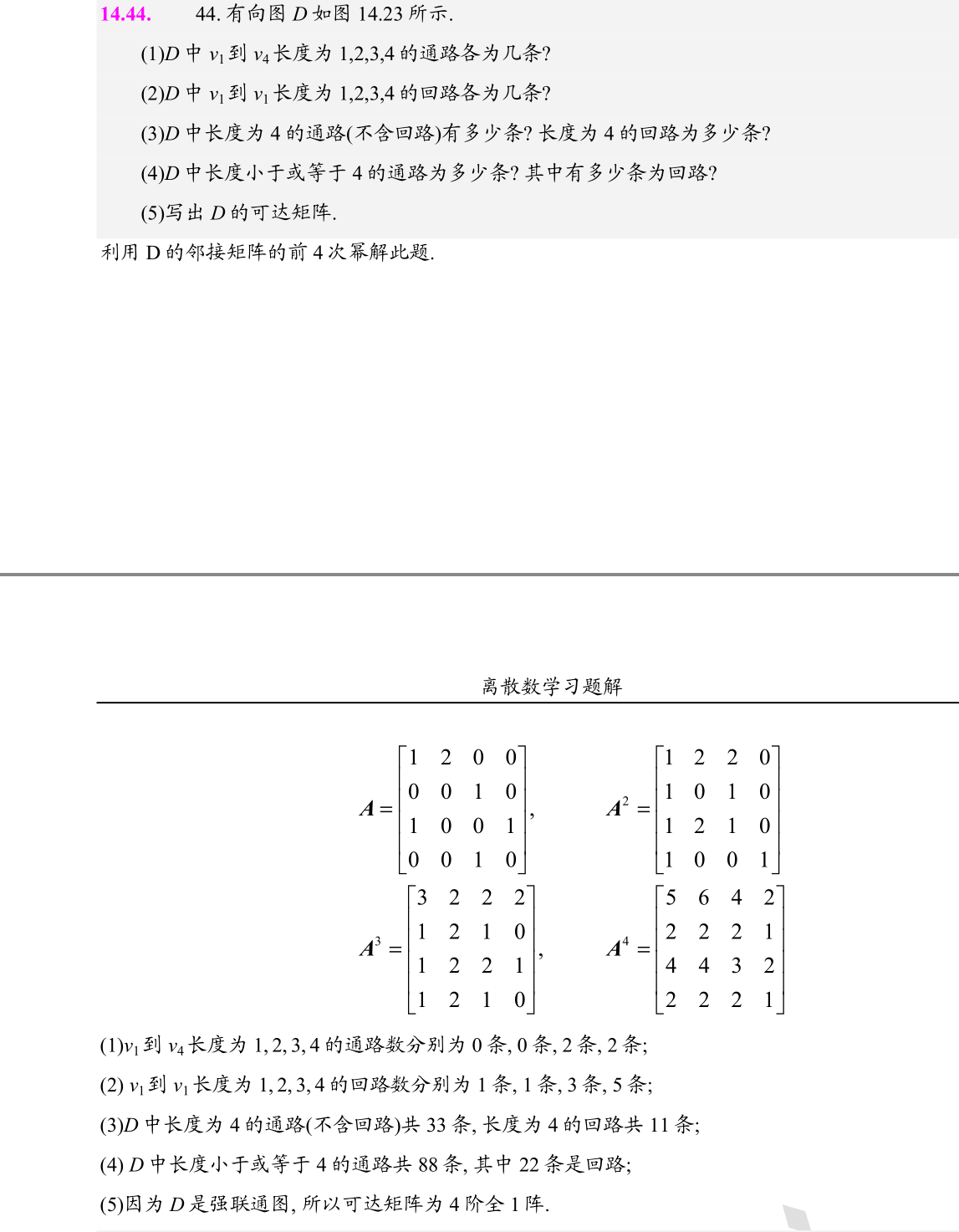 1) v1到v4为a(1,4)的数目 2)v1到v1为a(1,1)的数目
