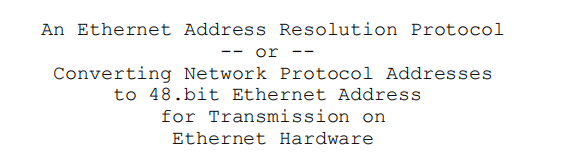 Converting Network Protocol Addresses to 48.bit Ethernet Address for Transmission on Ethernet Hardware,将网络协议地址转换为48位的以太网地址,目的是以便在以太网硬件上传输