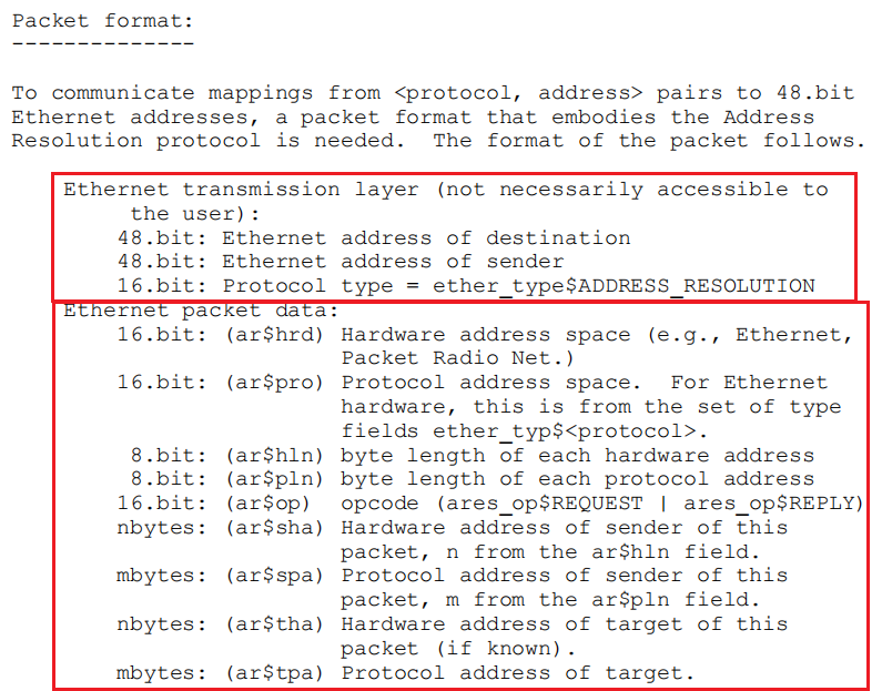 其他未提及部分,请自行翻阅RFC 826文档