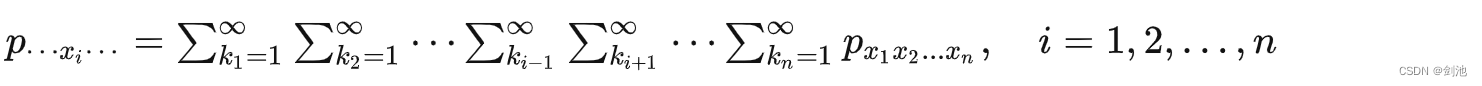 依次,多维随机变量可以有 k, (1≤k 离散型随机变量有 k 维边缘分布律,这里以 k=1 为例: 连续性边缘分布概率密度 连续型随机变量有 k 维边缘概率密度,这里以 k=1 为例: ![]()