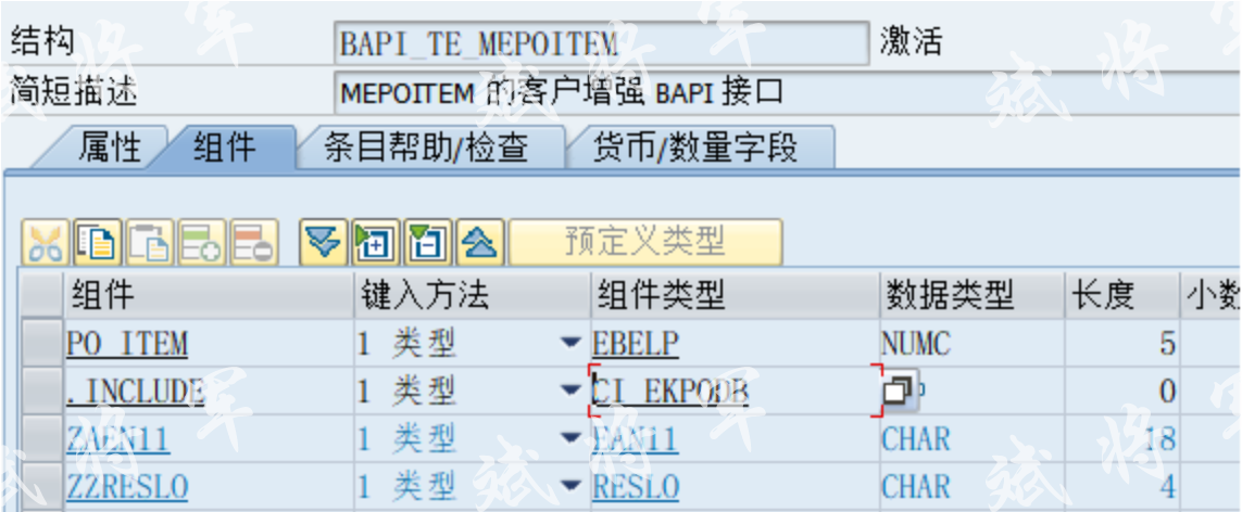 行项目增强字段放在BAPI_TE_MEPOITEM结构中的CI_EKPODB附加结构中