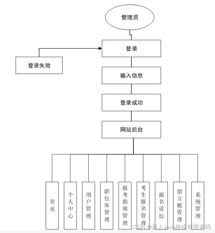 (1)功能要求:可以管理首页、个人中心、用户管理、职位库管理、报考指南管理、考生报名管理、报名论坛、留言板管理、系统管理等功能模块。