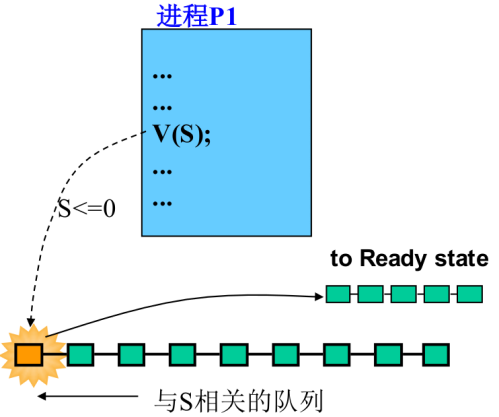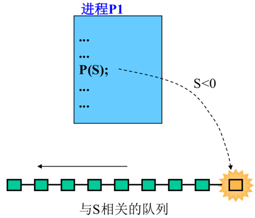S=S-1if(S<0){//调用进程被阻塞,进入S的等待队列}