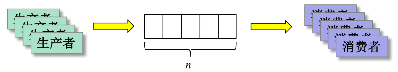 描述:生产者和消费者共享n个缓冲区,生产者生产产品放入缓冲区,消费者从缓冲区中取产品消费。请写出能够正确反映它们逻辑关系的代码