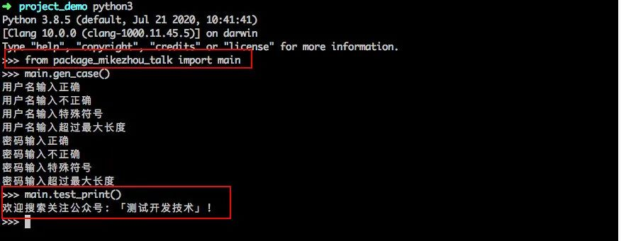 value_list = ['正确', '不正确', '特殊符号', '超过最大长度']def gen_case(item=case_list, value=value_list):'''输出笛卡尔用例集合'''for i in itertools.product(item, value):print('输入'.join(i))def test_print():print("欢迎搜索关注公众号: 「测试开发技术」!")if __name__ == '__main__':test_print()