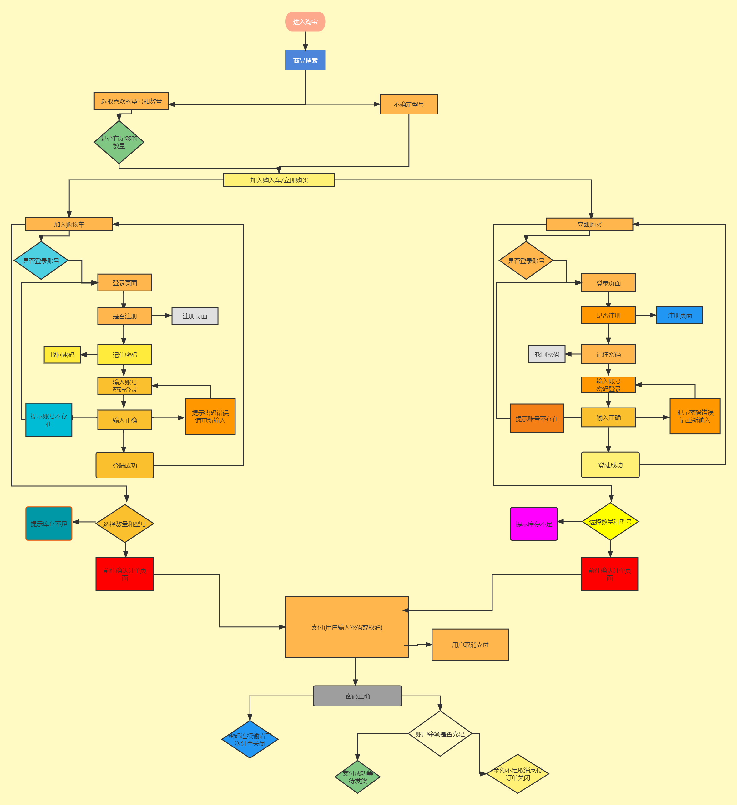 进入淘宝-商品搜索-选取喜欢的型号和数量-加入购物车-账号密码登录-登陆成功-确认购买-填写收货地址-输入支付密码下单成功