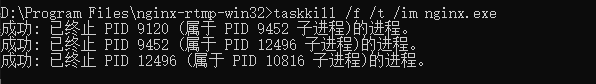 5.通过taskkill /f /t /im nginx.exe结束进程