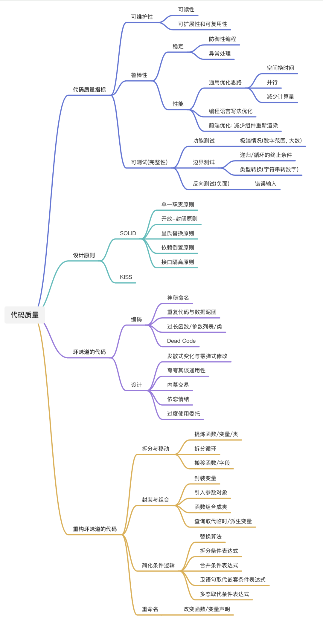 这三个常见的场景分别对应代码质量衡量指标中的可维护性、鲁棒性和可测试性。因此代码质量并不是只是与维护者的心情息息相关,与软件的交付质量也是密不可分。