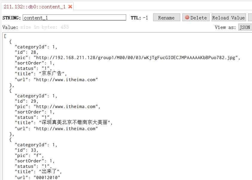public class ContentController {//根据分类id查询广告数据@GetMapping("/list/category/{id}")public Result> findByCategory(@PathVariable(name = "id") Long id){List contents = contentService.findByCategory(id);return new Result>(true,StatusCode.OK,"查询成功",contents);}