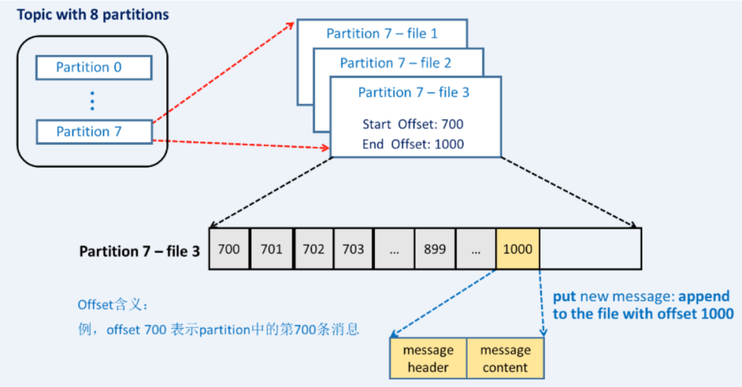 Talos 在 HDFS 的数据存储模型为:每个 Partition 在 HDFS 中对应一个目录,通过 append 方式追加消息到文件。Offset 代表此条消息在 Partition 中的位置,唯一且递增。文件名是上一个文件最后一条消息的 Offset + 1,即上一个文件的 EndOffset + 1.