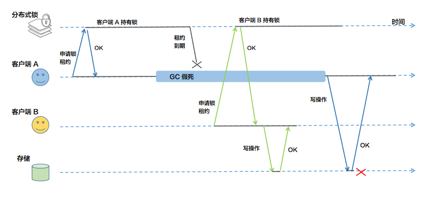 不能保证 Partition 的 Active 状态与分布式锁信息的一致性:如果发生长时间 GC,续约间隔时间可能超过 TTL 时间,在 GC 完成和下次续约之间,可能出现实际已掉锁但状态为 Active 的窗口,如下图