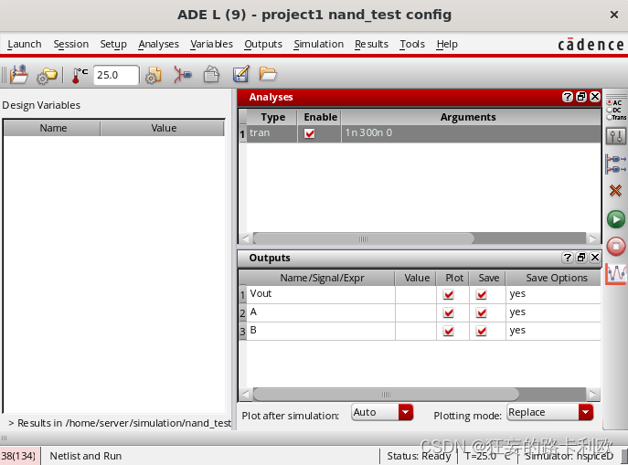 然后就可以进行后仿真了。注意要在这个工具界面的ADE L这里打开。