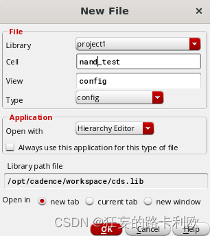 在testbench下新建一个cell,这里我就取名nand_test。