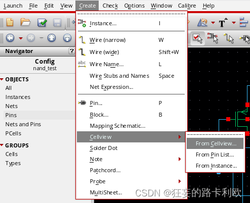 首先,必须为电路创建symbol视图,后仿真中需要用到。为电路创建symbol在这个选项: