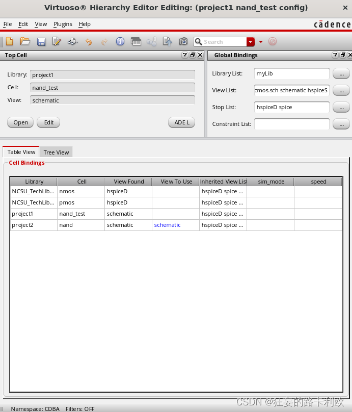 接下来的后仿真,主要用到的是netlist这个网表文件。和spectre提取的PEX不同,我们要用virtuoso的Hierarchy Editor这个工具来进行。这是一个层次化仿真的工具,可以把上一层的电路做成一个网表给下一层进行仿真。