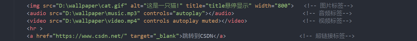 - 少数标签由一部分组成,我们称之为:单标签。自成一体,无法包裹内容。