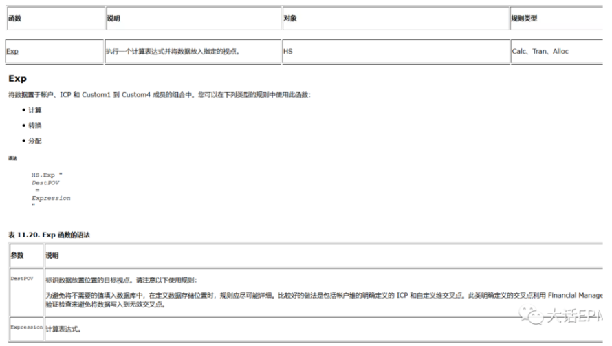 Exp函数是HFM的顶级对象,即只能是HS.exp的用法,并且只能在计算规则(Calculate),折算规则(Translate),分摊规则(Allocate)中使用。