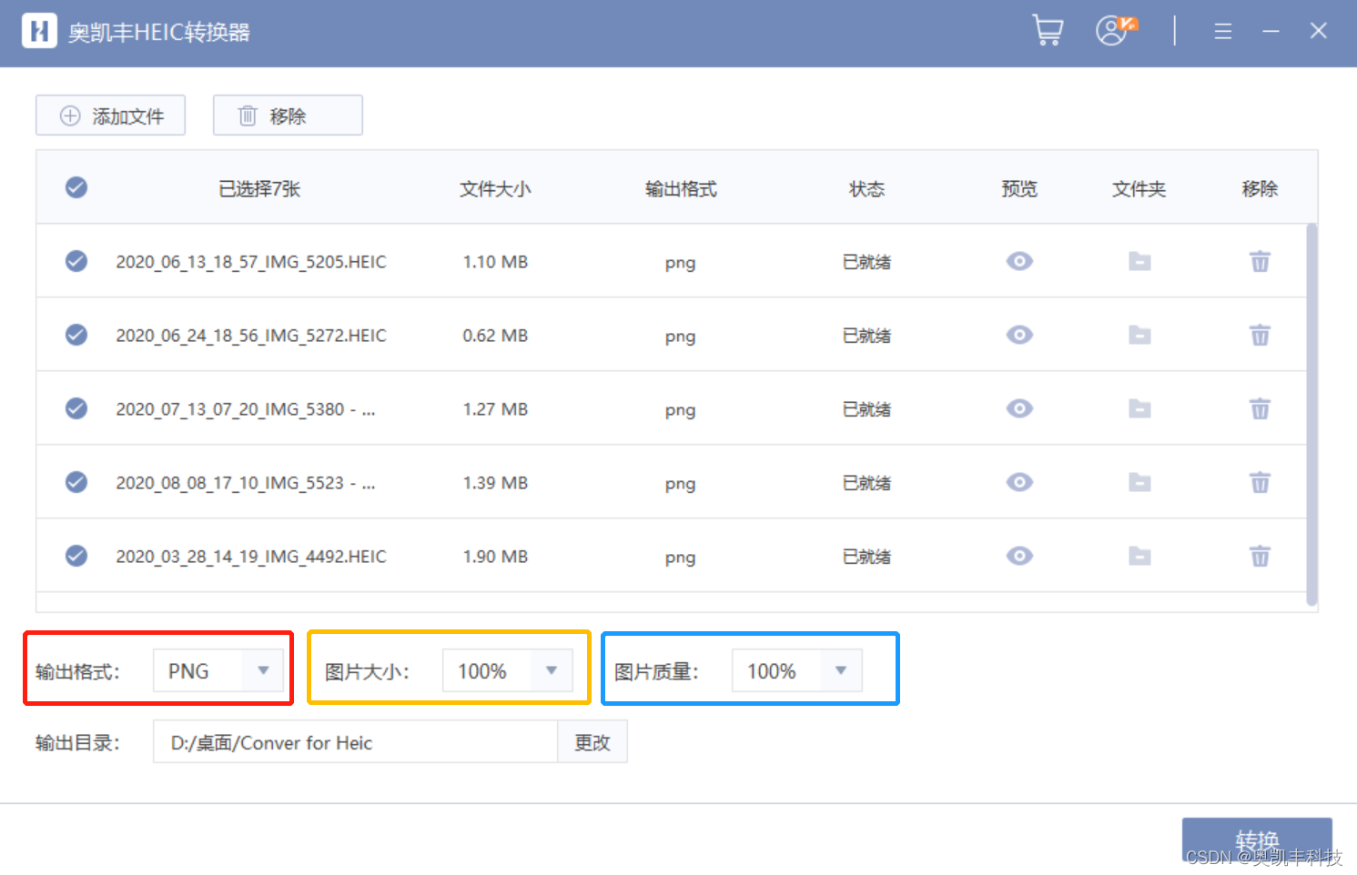 可以批量操作也不会损坏图片画质的方法还是要使用图片转换器,比如奥凯丰 HEIC图片转换器将全部图片添加到转换器中,可以自己选择图片大小、图片质量。
