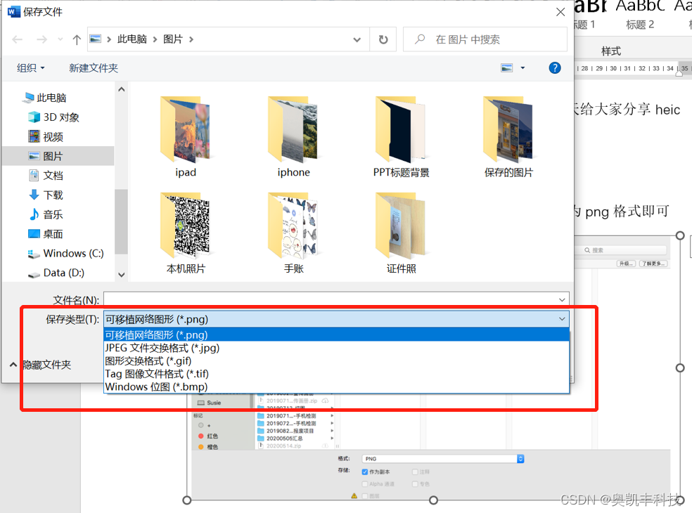 如果没有Ps软件,我们也可以将heic图片添加到word文档中,右键点击图片选择另存为图片,选择图片类型为png即可