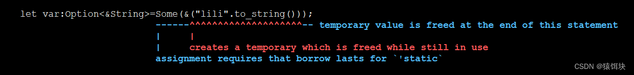 fn main() {let var:Option<&String>=Some(&("lili".to_string()));//局部值unsafe{NAME=var;}println!("");