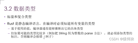 整数默认为i32 ,浮点数为f64 。请注意,Rust 还可以从上下文中推断类型。