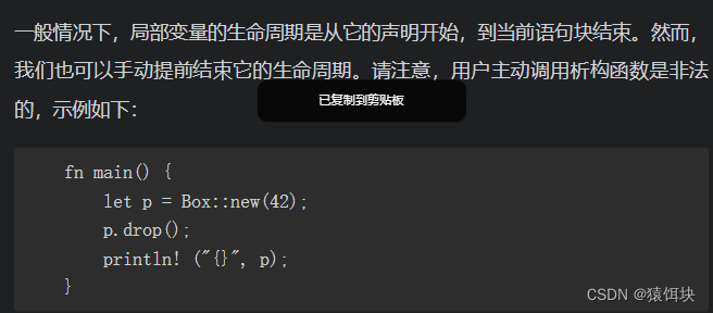 Drop特征,在超出作用域后,自动释放锁,以便其它线程能继续获取锁