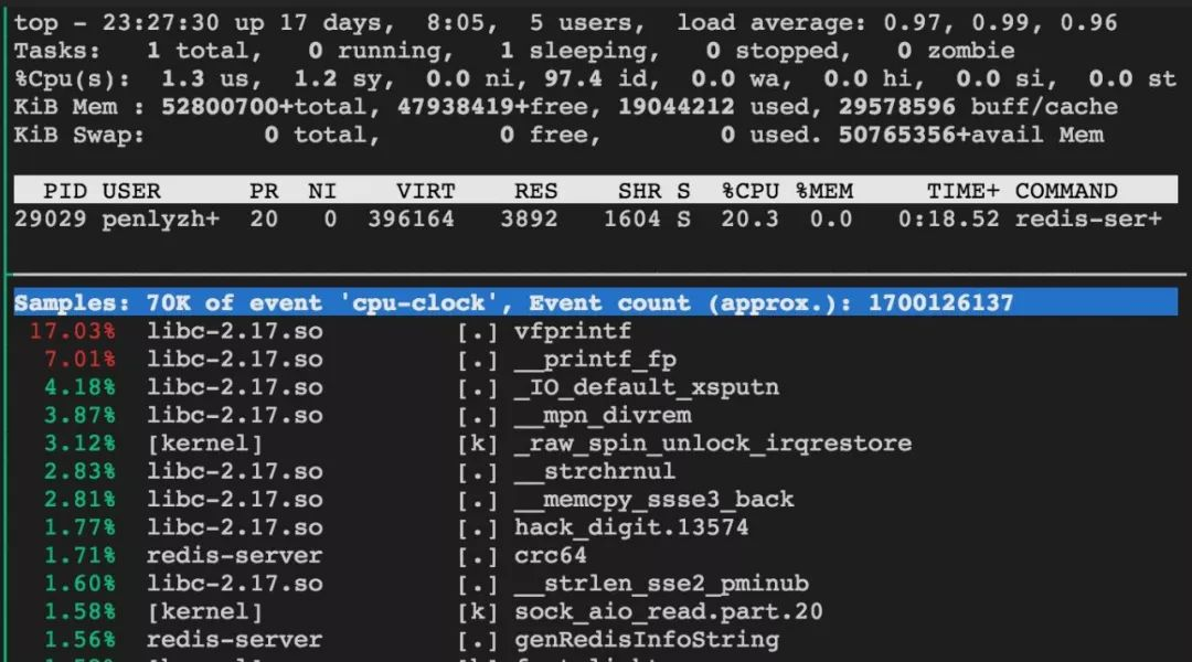 有用户通过定期执行info命令监视redis的状态,这会在一定程度上导致CPU占用偏高。频繁执行info时通过perf分析发现getClientsMaxBuffers、getClientOutputBufferMemoryUsage及getMemoryOverheadData这几个函数占用CPU比较高。