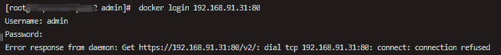 Error response from daemon: Get https://192.168.91.31:80/v2/: dial tcp 192.168.91.31:80: connect: connection refused