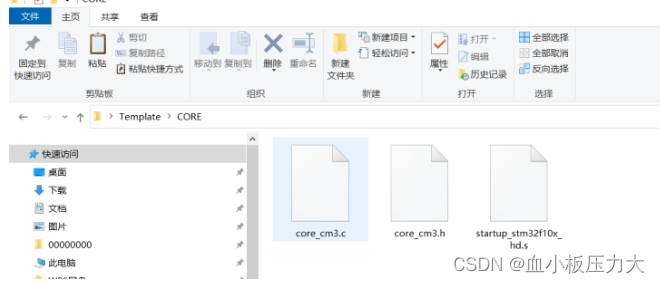 8)工程目录 CORE 是固件库包里面相关的启动文件,其中里面的startup_stm32f10x_hd.s 文件,这里我们我之前已经解释了 不同容量的芯片使用不同的启动文件,我们的芯片STM32F103ZET6 是大容量芯片,所以选择 这个启动文件。
