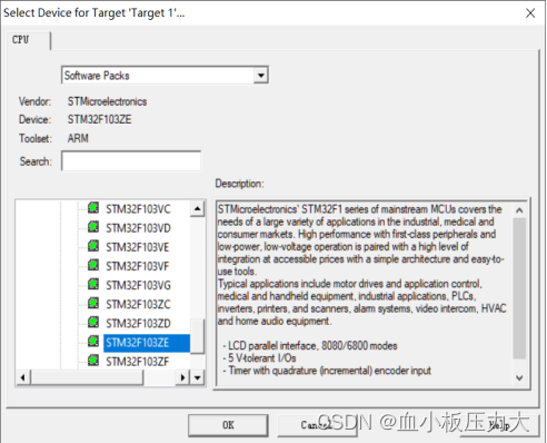 STMicroelectronics→STM32F1 Series→STM32F103→STM32F103ZET6