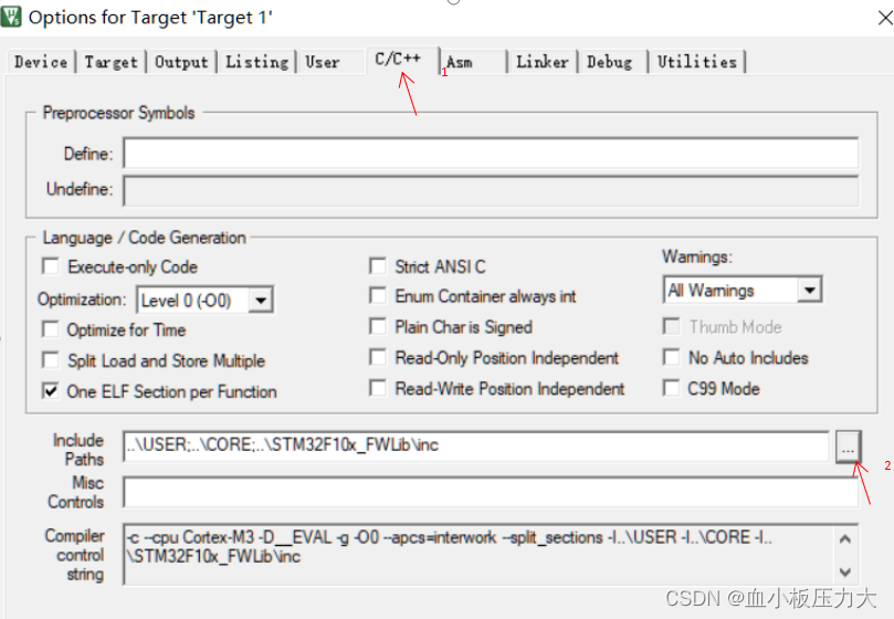 ,出来一个菜单,然后点击 c/c++选项.然后点击 Include Paths 右边的按钮。弹出一个添加 path 的对话框,然后我们将图上面的 3 个目录添加进去。记住,keil 只会在一级目录查找,所以如果你的目录下面还有子目录,记得 path 一定要定位到最后一级子目录。然后点击 OK.