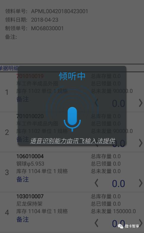当我们单据里面有多少货品后,需要定位到某一行时可以通过语音识别来定位到其所对应的行