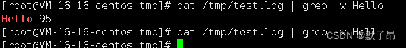 cat /tmp/test.log | grep -w Hello //-w 一定要完整匹配的才算匹配到